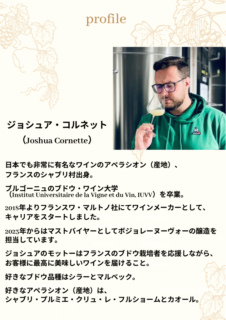 伝統的なアルコール発酵と、ブドウ内部での発酵(細胞内発酵)を組み合わせることで、ヌーヴォー特有の味と香りを生み出します。