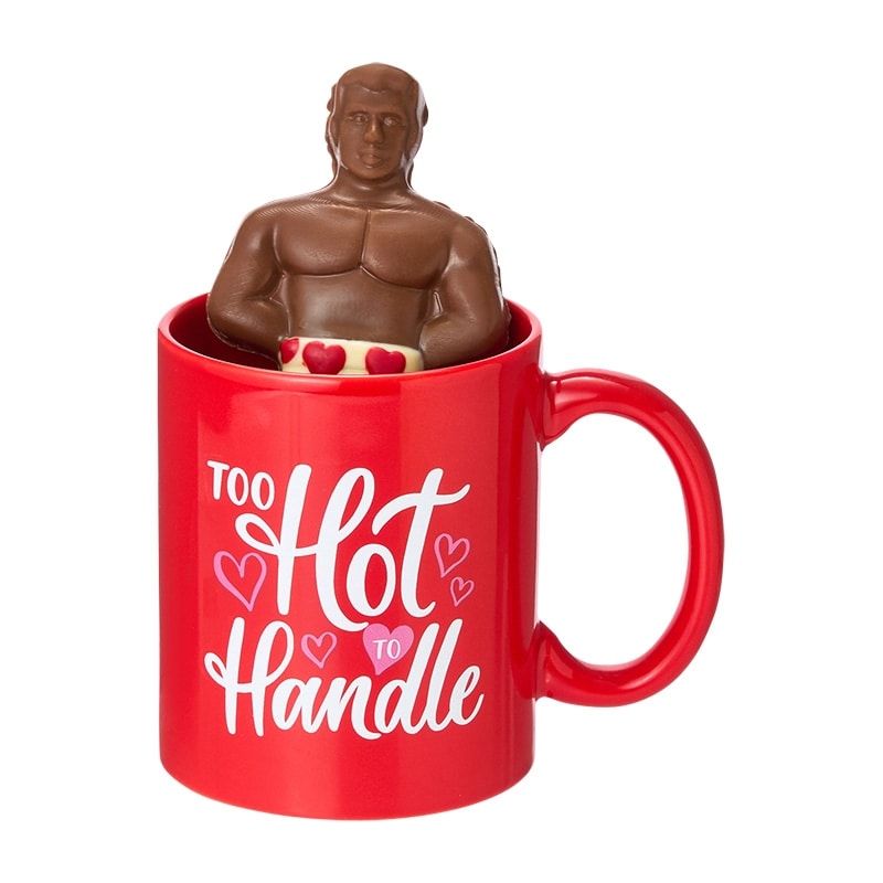 パーフェクトボディの男性がハート柄のパンツをはいた姿が可愛いチョコレート「パーフェクトマン」のチョコレート。中にミニマシュマロが入ったチョコレートボムと、マグカップのセットです。ホットミルクに入れると溶けてマシュマロが出てきます。ギフトにもおすすめ!