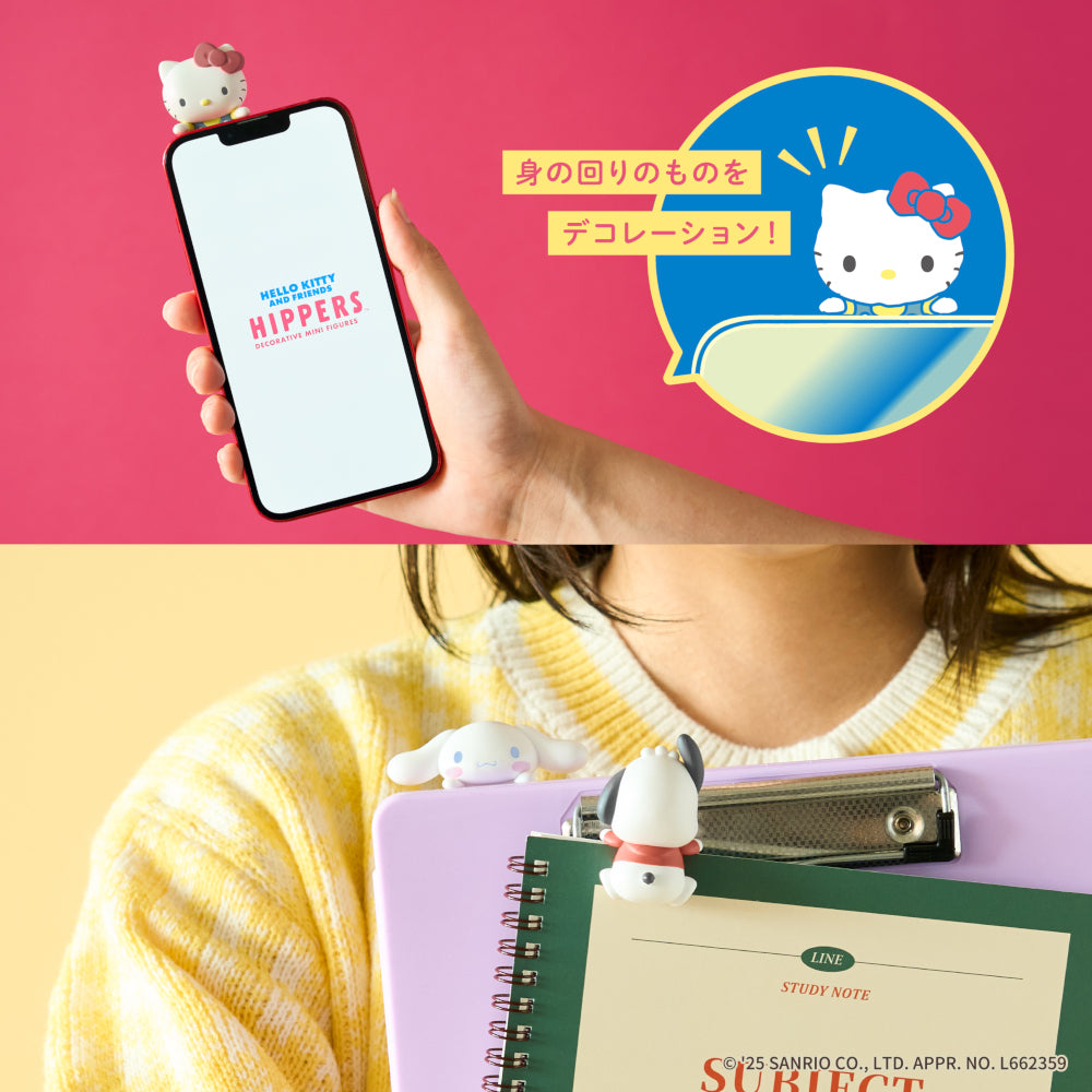 身の回りのものに貼り付けられるデコレーションフィギュア「HIPPERS(ヒッパーズ)」に、国や世代を超えて多くの人から愛されるサンリオキャラクターズが新登場。「ハローキティ」「ポムポムプリン」「クロミ」「マイメロディ」「シナモロール」「ポチャッコ」がラインナップ。