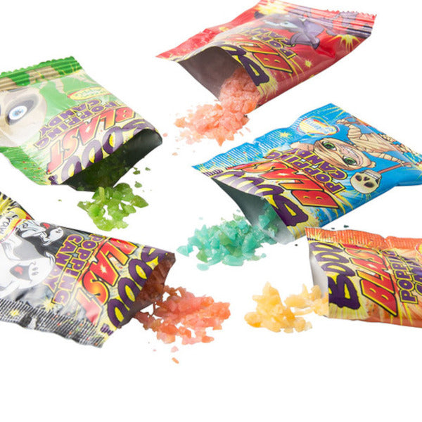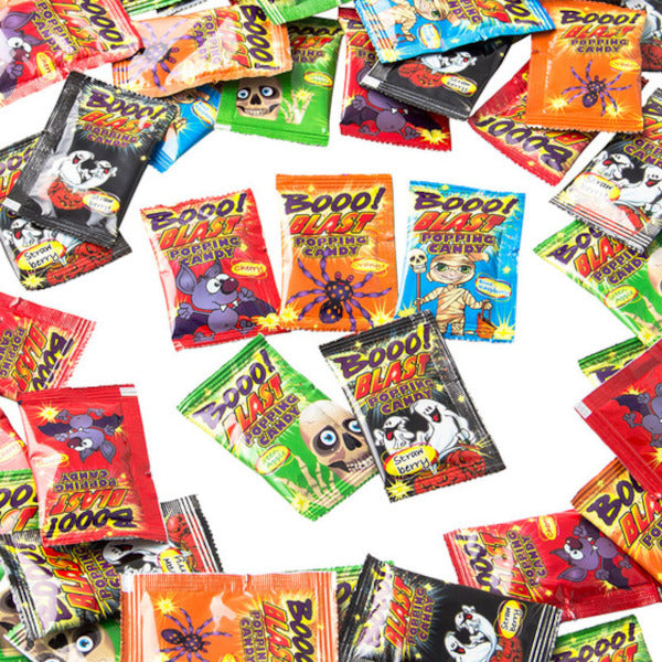 パチパチはじける刺激がハロウィンパーティにぴったり! 粒タイプのはじけるキャンディの小袋がぎっしり詰まっています。気軽に楽しめて適度な刺激でリフレッシュもできる小袋タイプ。ストロベリーやグリーンアップル、オレンジなど5種類の味が入っています。一人でもみんなに配って楽しんでも◎